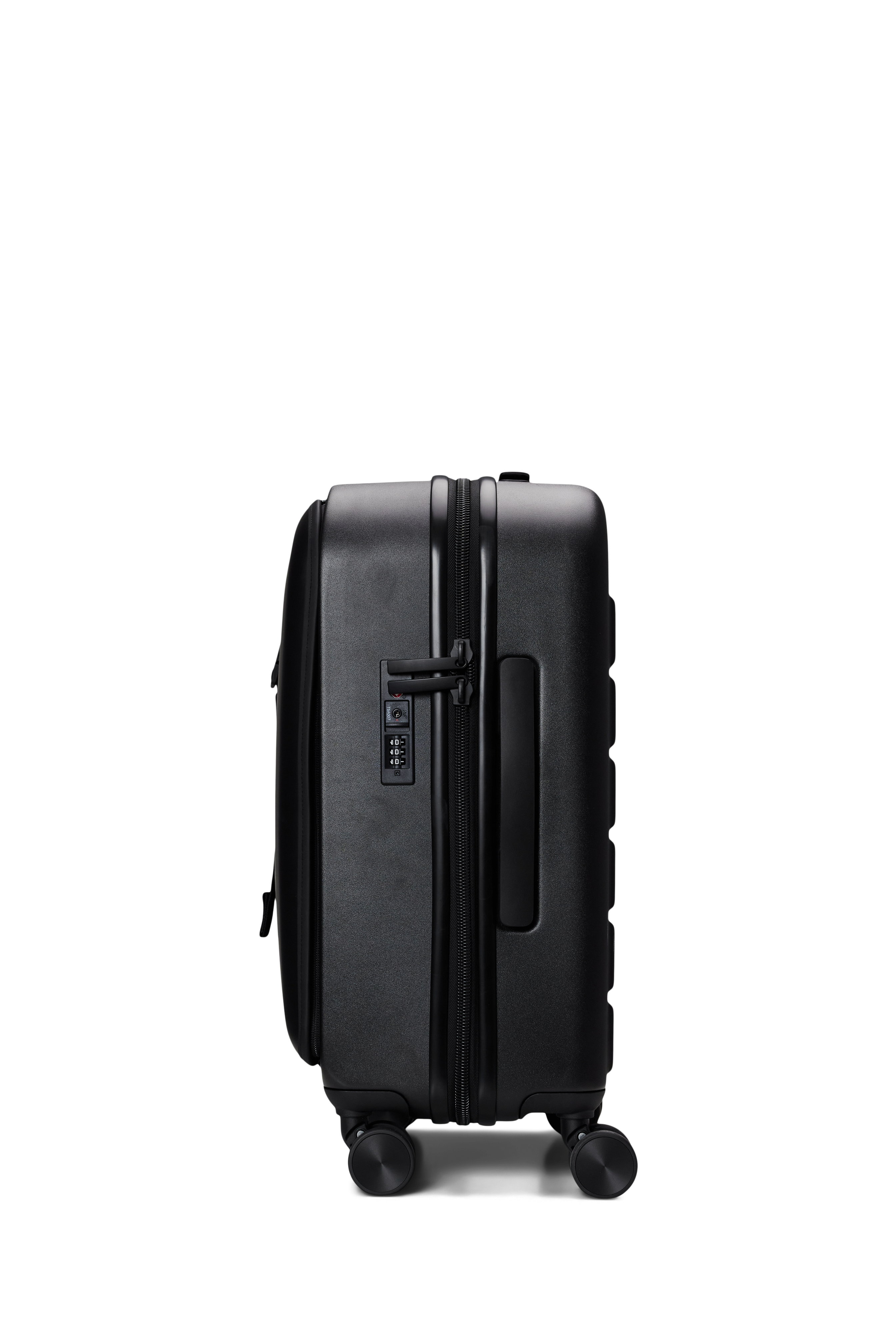 Wheel on, wheel off. Rains’ carry-on suitcase glides effortlessly on four multi-directional wheels. Made from durable polycarbonate, the waterproof bi-fold body boasts two spacious compartments and secures with a TSA-approved integrated lock. Raise the telescopic handle to a level that’s comfortable for you.