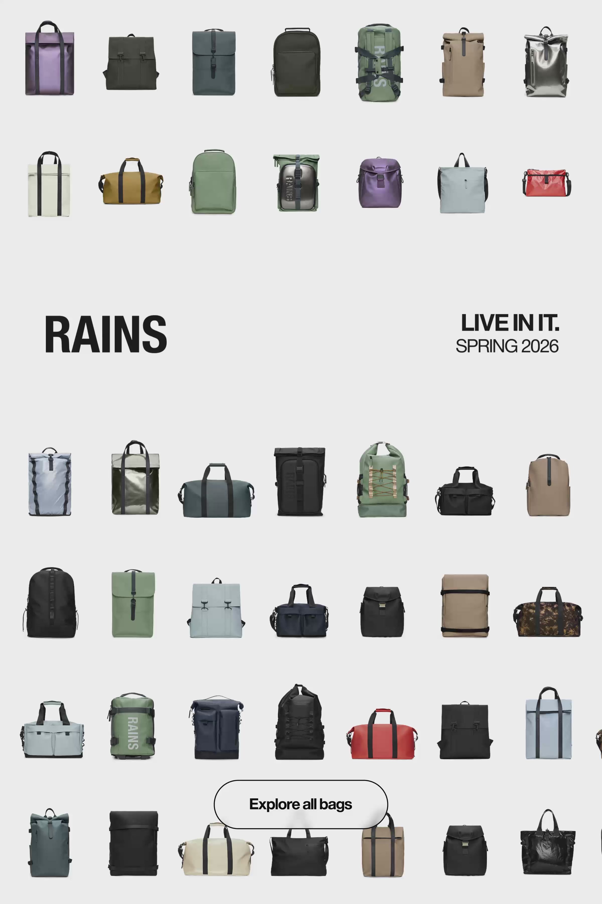 Descubra las bandoleras y riñoneras impermeables de Rains. Nuestras siluetas para condiciones lluviosas se presentan en proporciones compactas y están confeccionadas con los característicos tejidos con revestimiento de la firma.