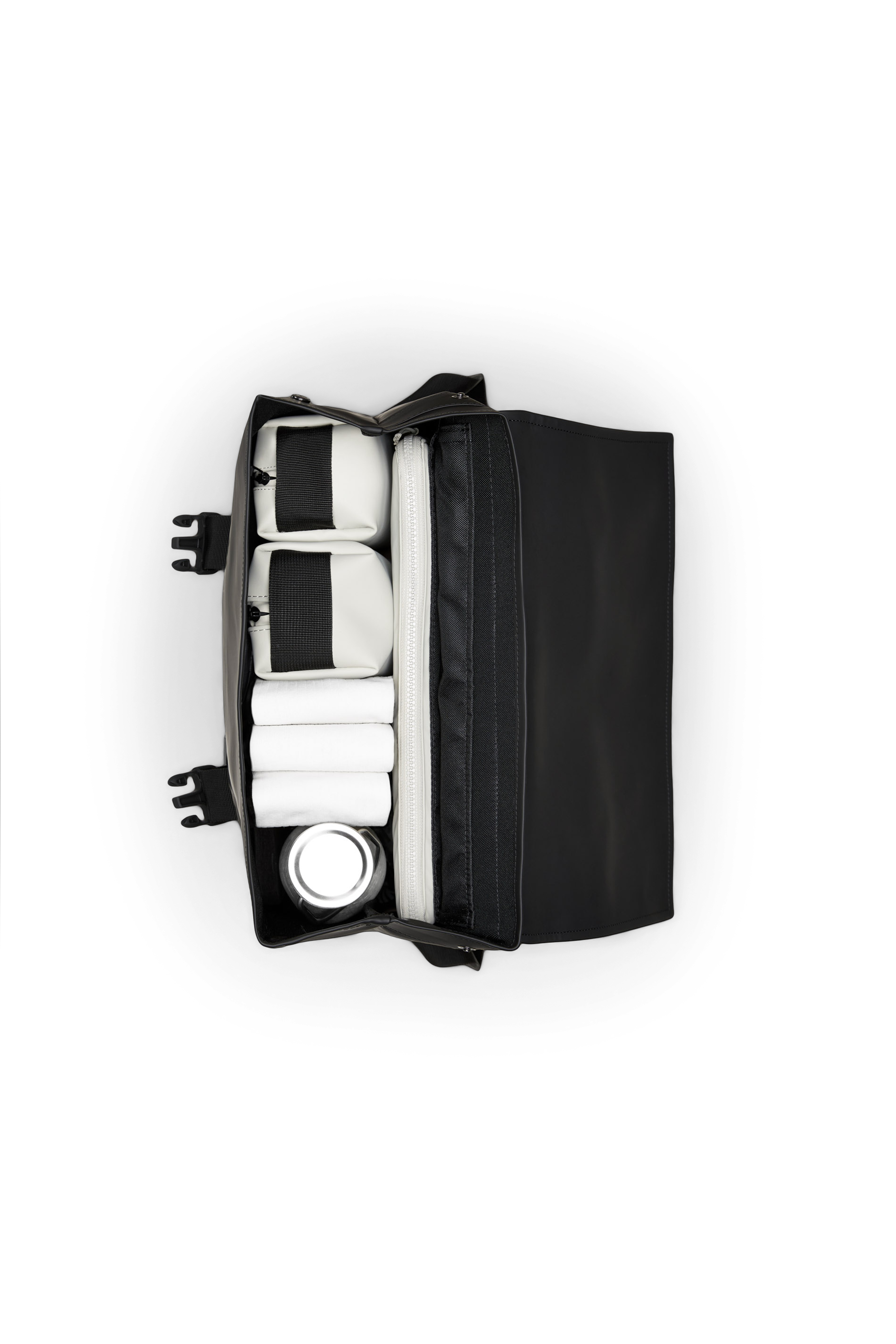 Trail MSN Bag está confeccionada en el tejido de PU característico de Rains, diseñado para ofrecer robustez en el transporte, durabilidad y un suave acabado