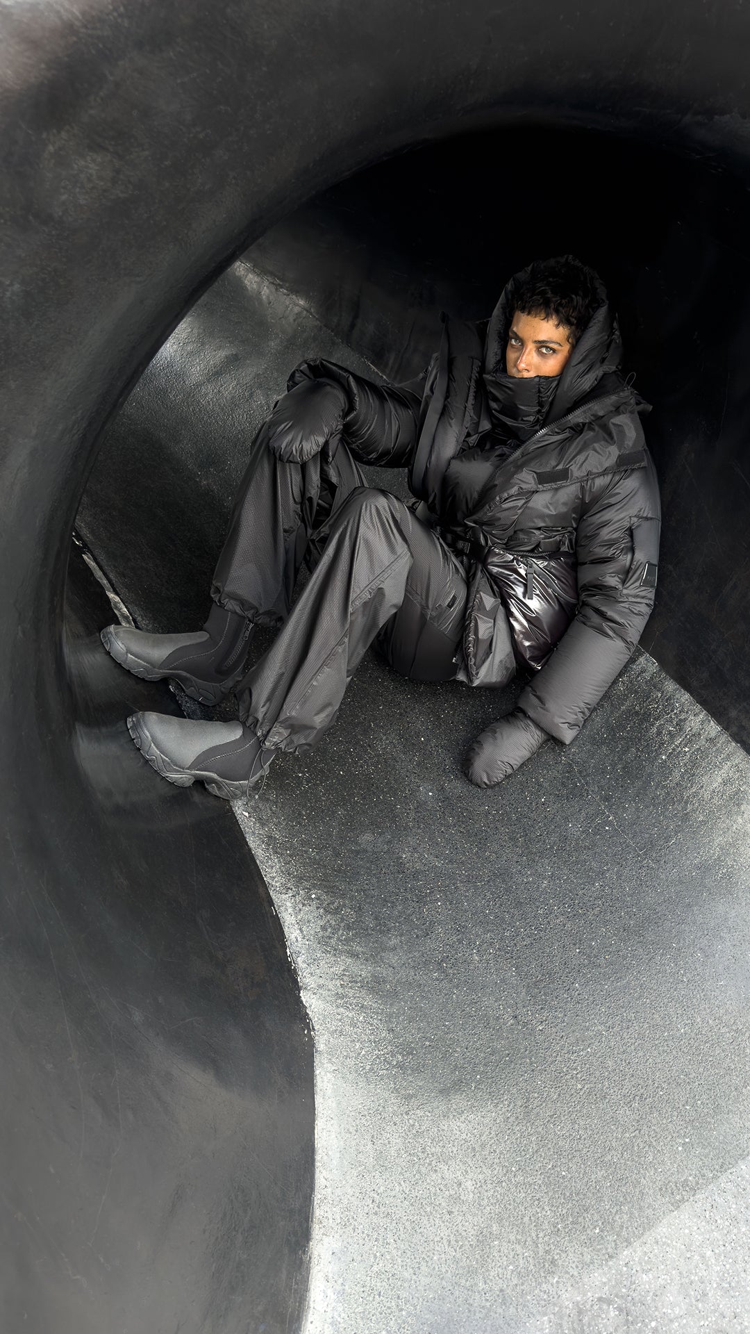 El diseño está confeccionado con una capa exterior suelta de nailon-ripstop. La silueta se completa con un suave acabado mate semitransparente.