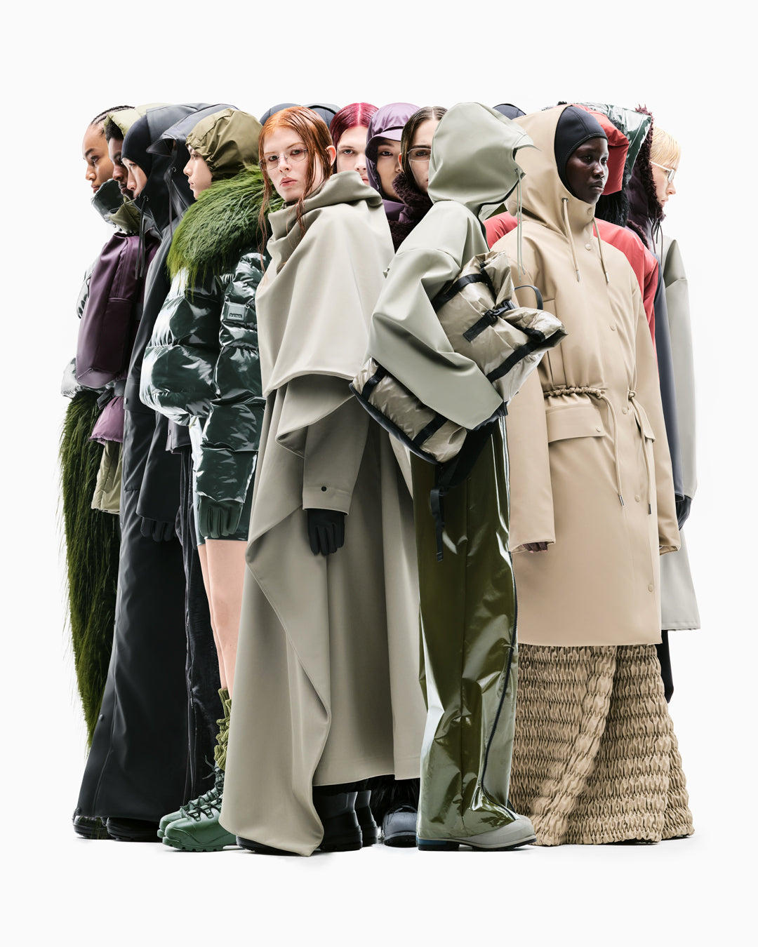Inspired by the thrashing rhythm of the North Sea, you’ll find a palette of sophisticated tones and POP colors. Deep murky waves crashing against the concrete greys of the city. In FOREVER, recognizable fabrics blend with a new sensorial direction. Notice hints of classic Rains — our iconic Jacket — now cropped and reinforced with the same thick, structured material as our Hilo Bags. Exaggerated durability. Expressive fleece materials soften our traditional sharp lines. The signature meets the next step.