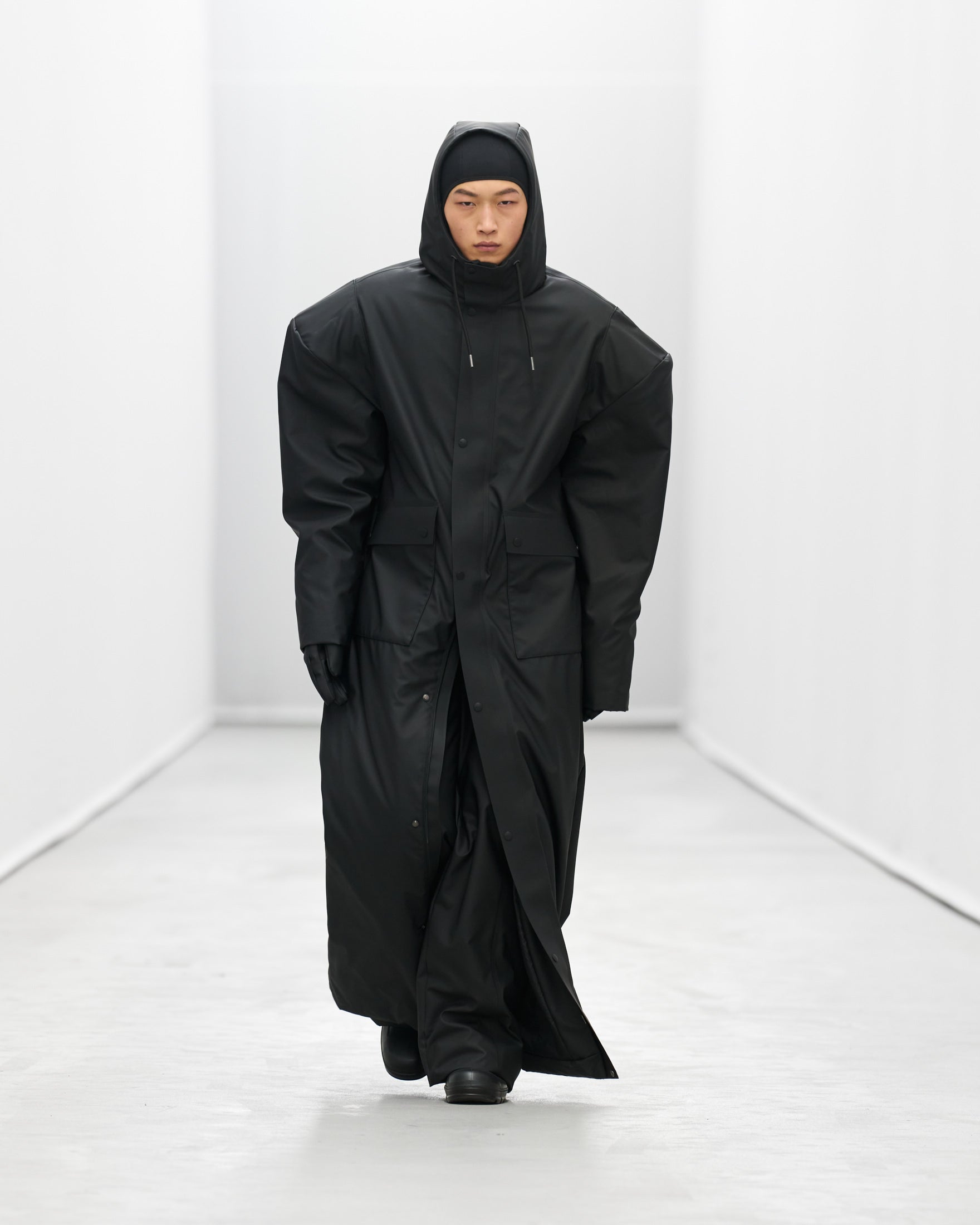 Styled by frequent collaborator Pernille Teisbaek to reflect Rains’ evolution, silhouettes and accessories becomes more extreme as the show goes on.