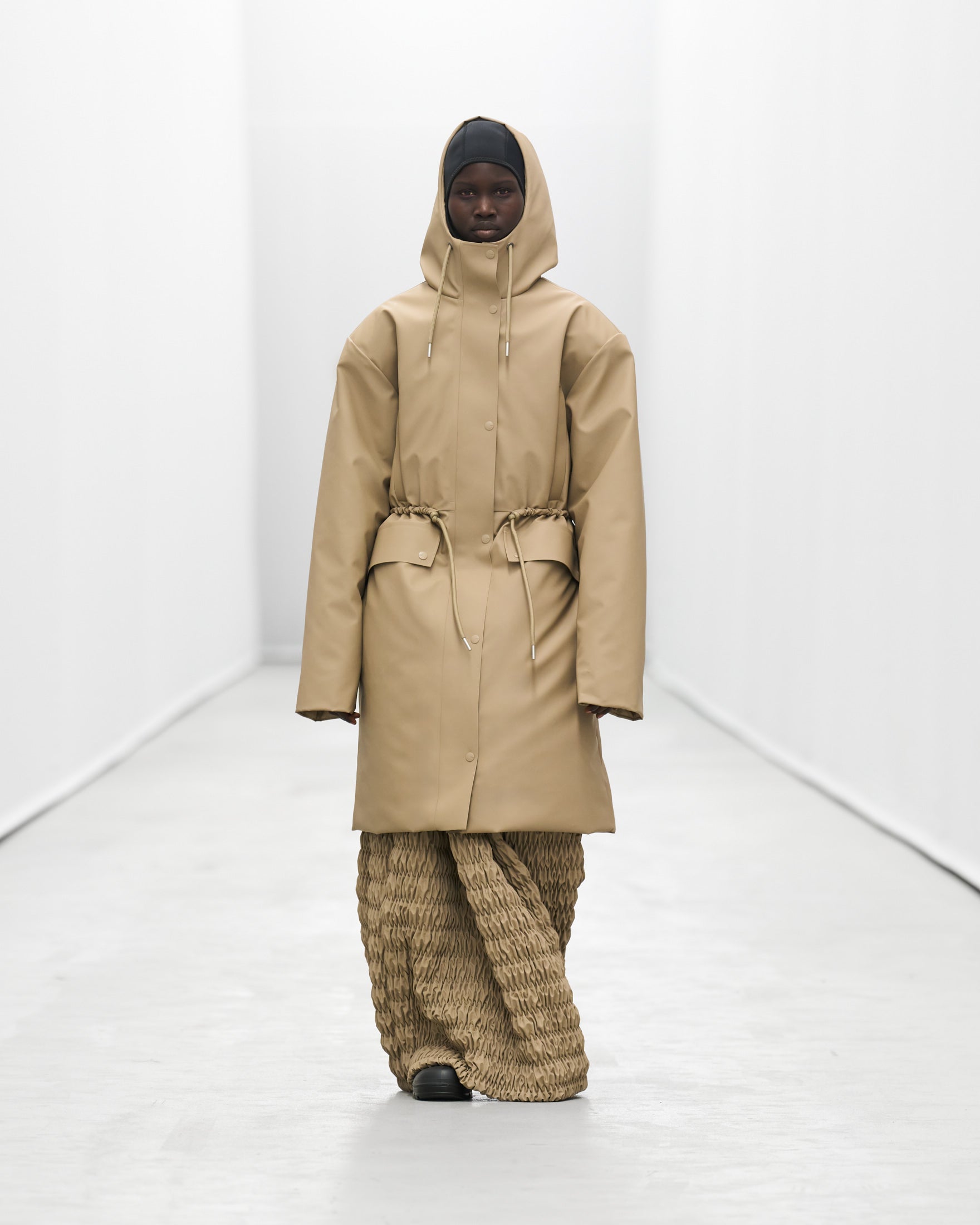 “For this show, we were interested in reinventing staples. Balancing the timeless with the extreme. FOREVER icons meet future icons. Showing not only our progression when it comes to silhouettes, but textures, colors, and design innovation, too. There’s a quiet confidence, a subtle boldness. The show itself evolves—starting with our more muted pieces and building up to a louder finale. Ready for the most extreme weather. ”