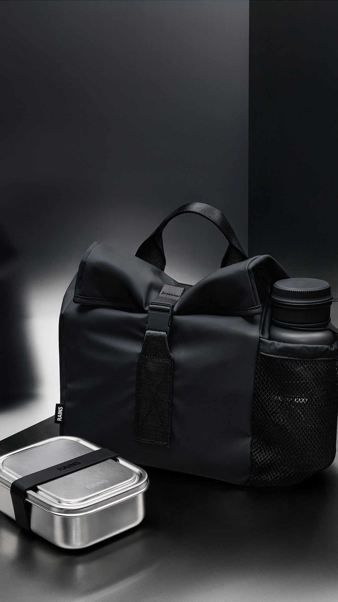 A functional trio made for meals on the move, complete with a complimentary Rains Water Bottle.